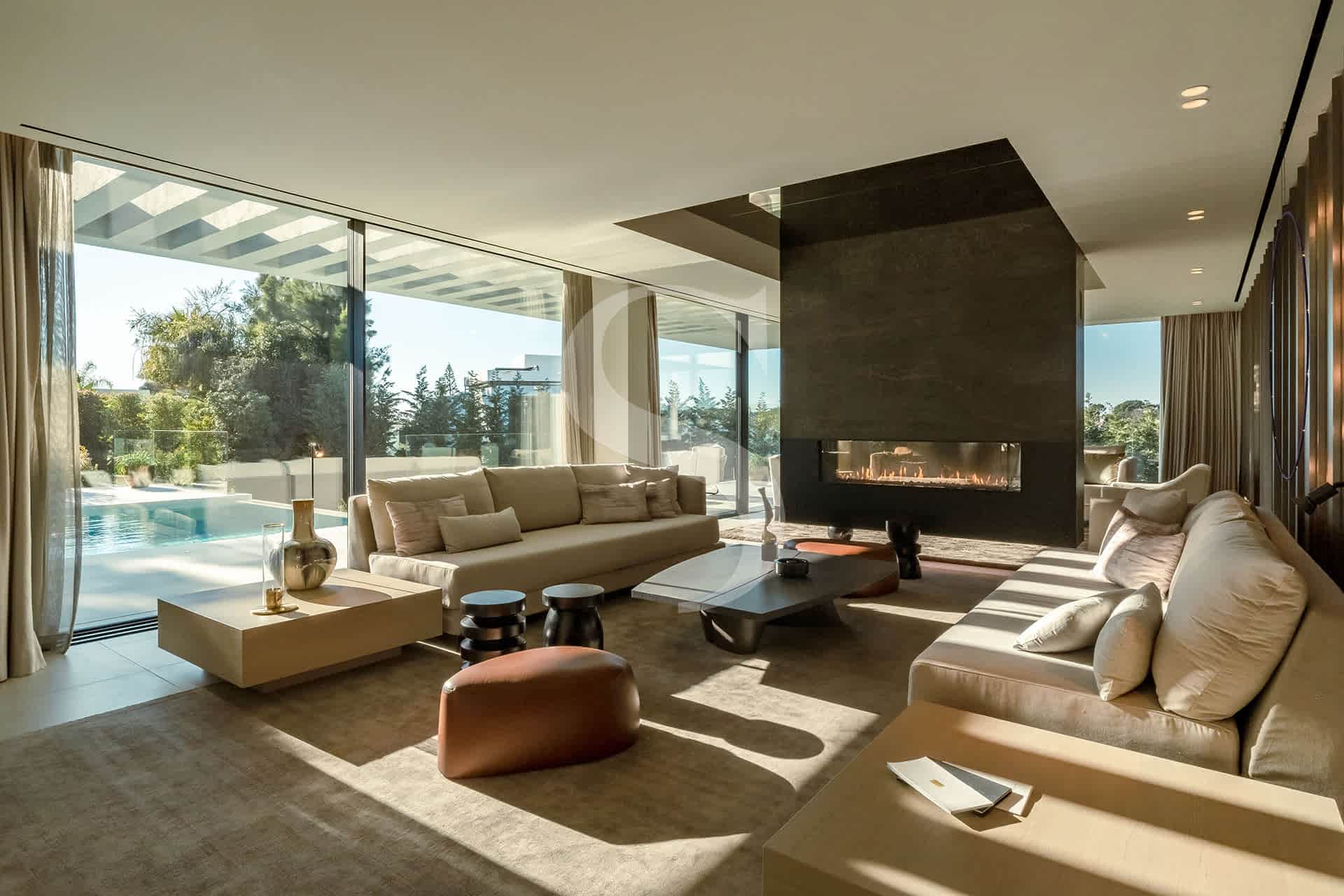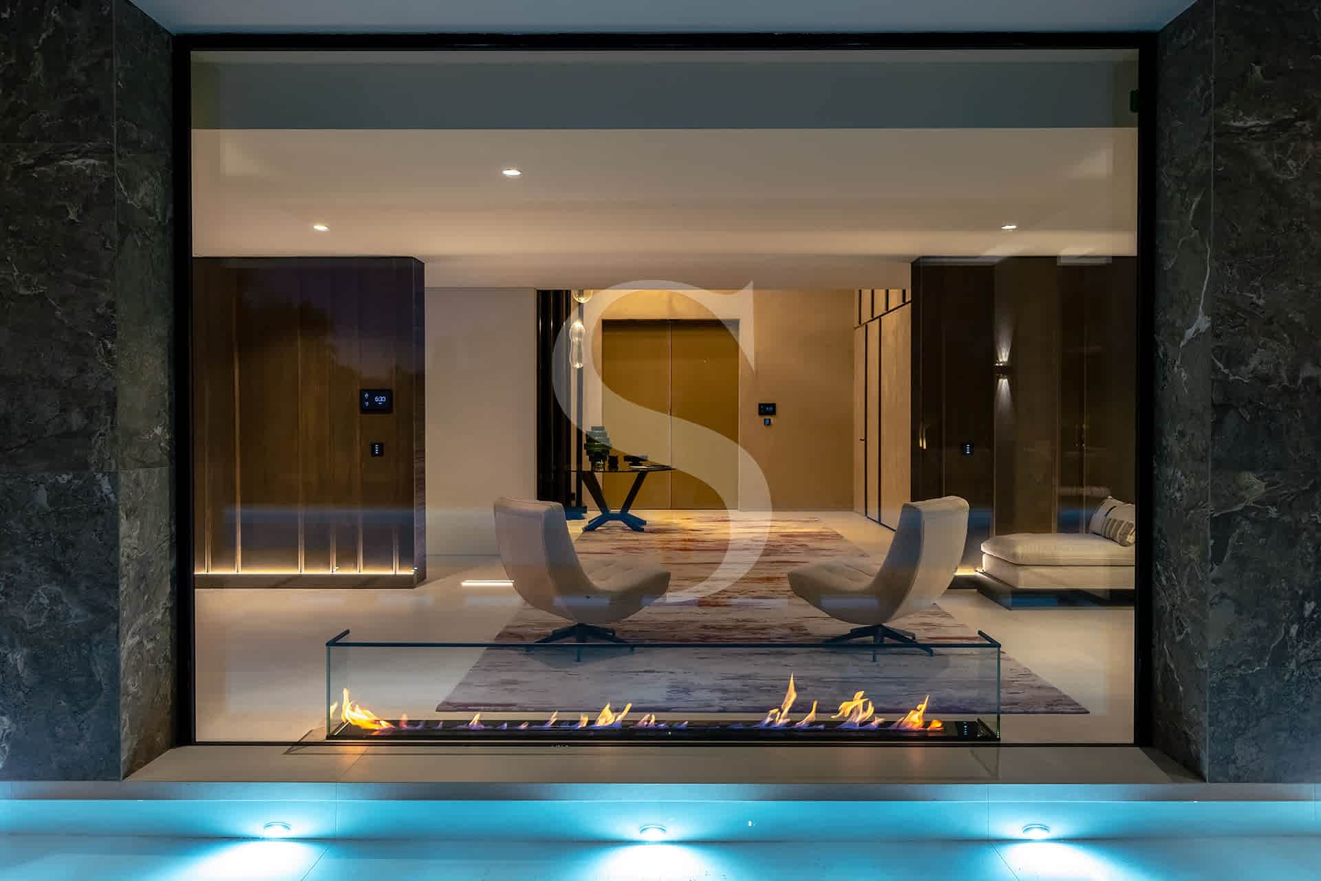 Combining bold design with state-of-the-art features, the home offers an unparalleled living experience. Smart automation seamlessly integrates every aspect of modern convenience, while the private spa, rooftop Jacuzzi, and suspended fireplace elevate both relaxation and sophistication.