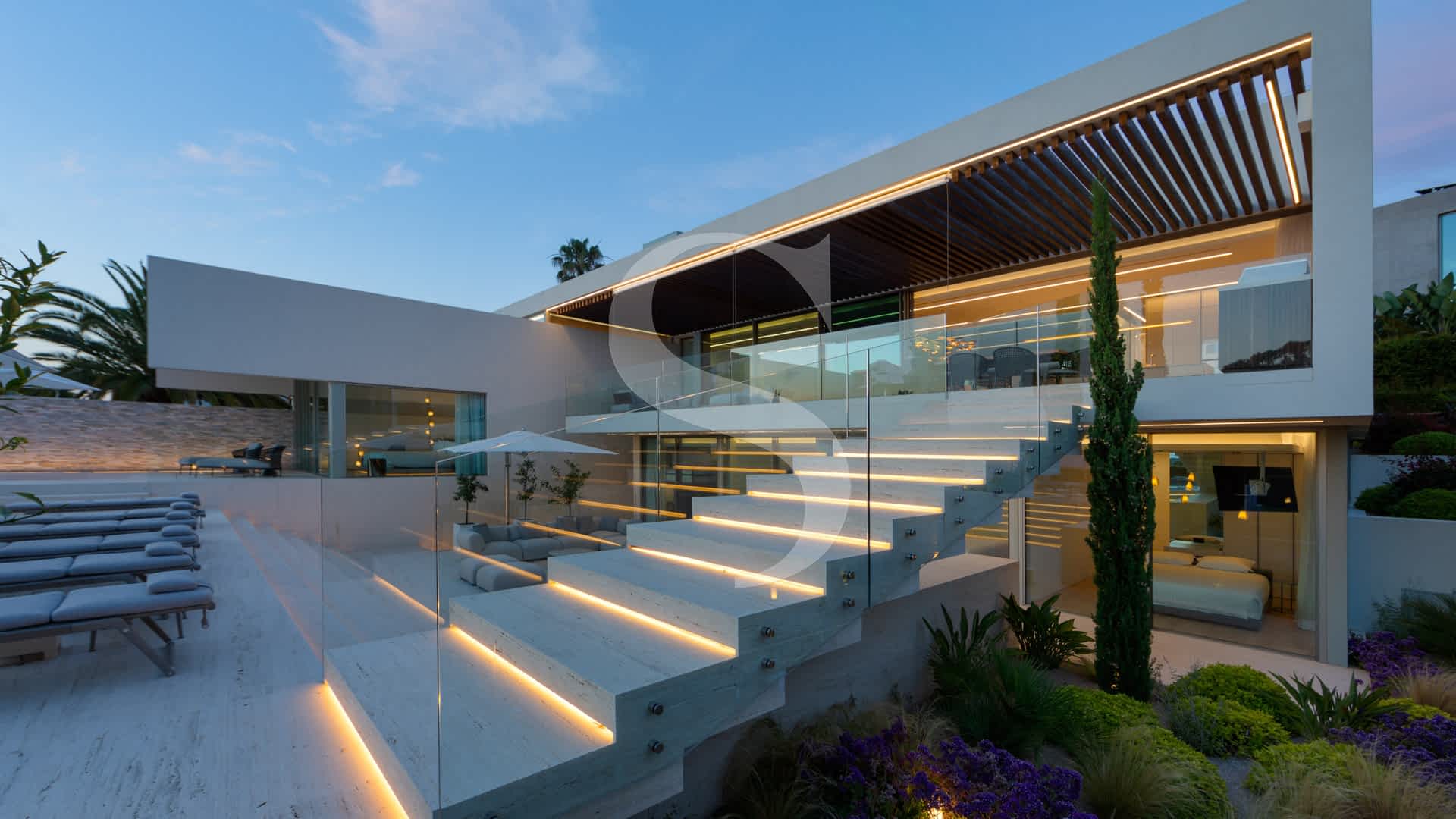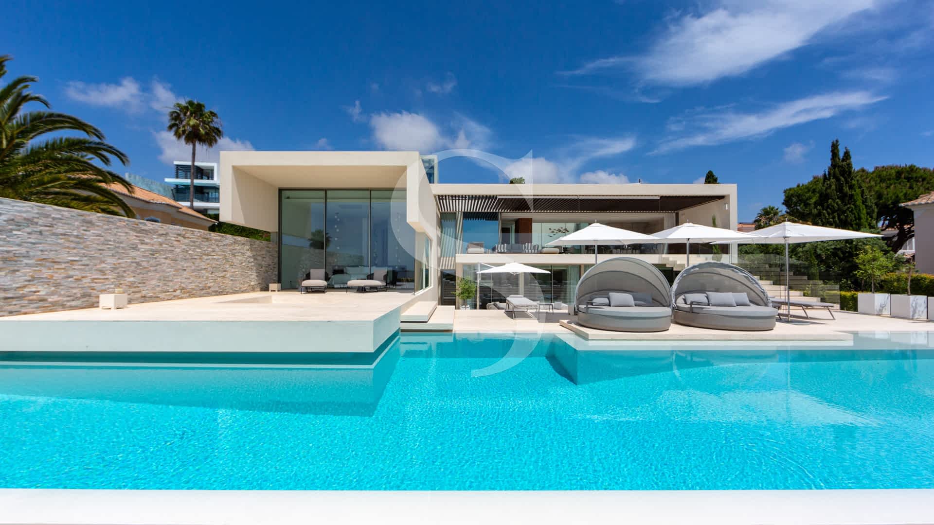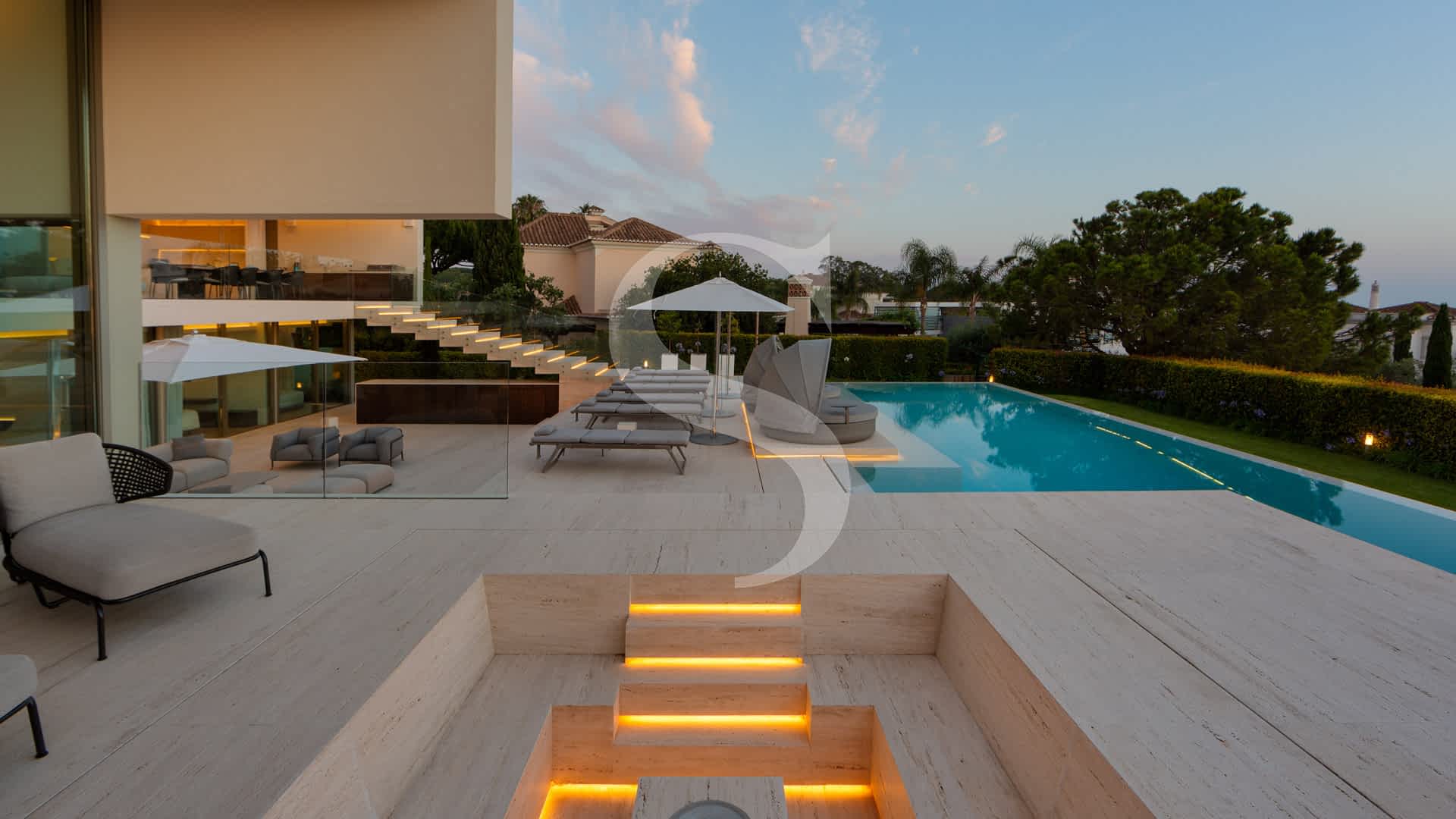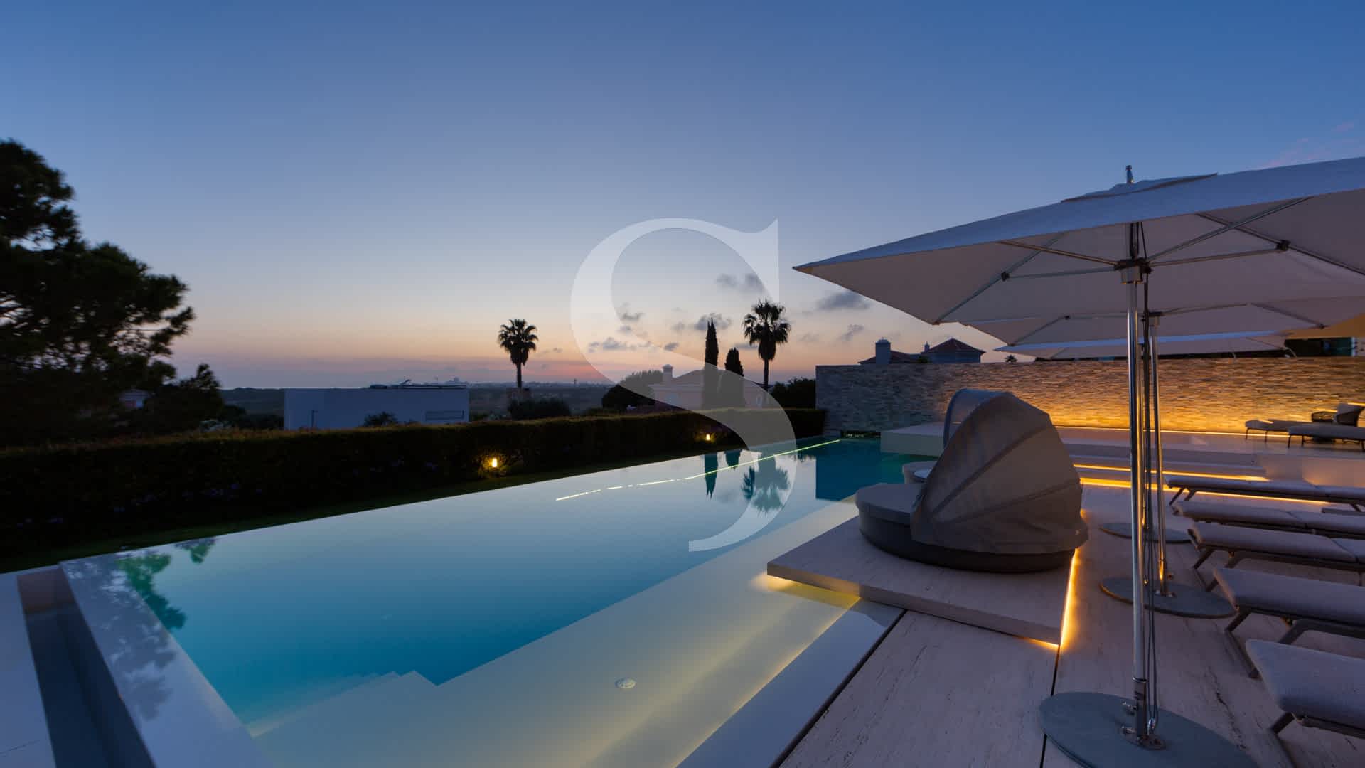 Step outside to experience exceptional outdoor living: a rooftop terrace with a plunge pool and fire-pit lounge, multiple alfresco dining areas, an expansive pool deck, and a luminous courtyard connecting the lower level with a private cinema and garage. This villa is a masterpiece of design and comfort, just minutes on foot from Vale do Lobo’s exclusive beaches, golf courses, fine dining, and leisure facilities.